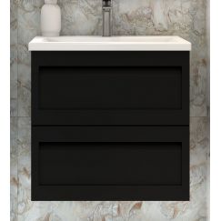 Тумба подвесная Art&Max Platino 58 см с раковиной AM-LAV-580-MR-A, 2 выдвижных ящика, направляющие скрытого монтажа, с доводчиками, цвет черный матовый.