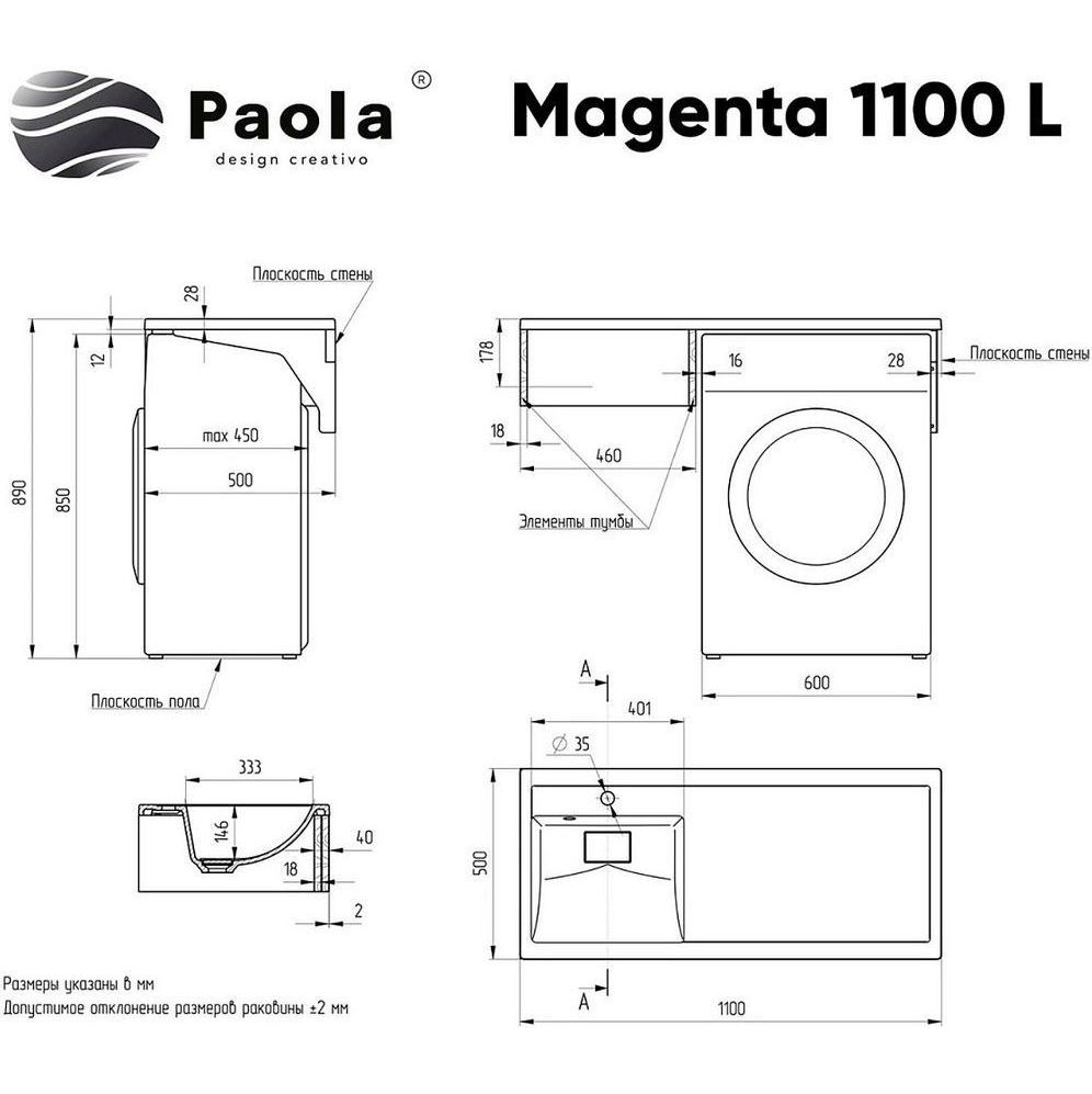 Тумба напольная с раковиной-столешницей Azario Magenta 110 см L CS00078394