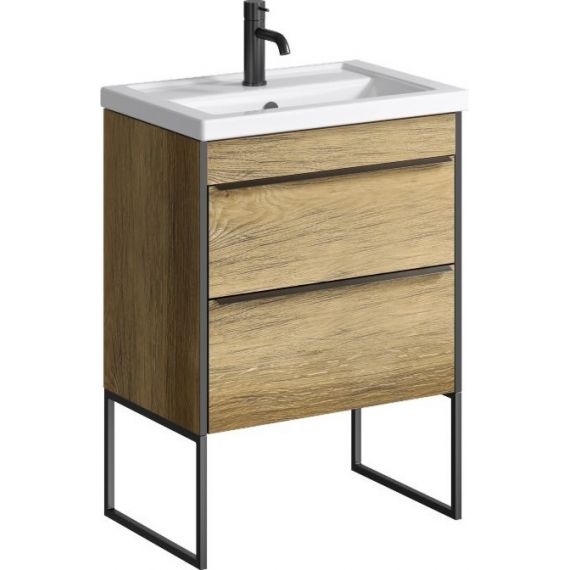 Тумба напольная Aqwella Fargo 60 см с раковиной Фостер 60 см, с двумя ящиками, оснащенными скрытыми направляющими австрийской фирмы Blum с системой мягкого закрывания, цвет дуб балтийский.
