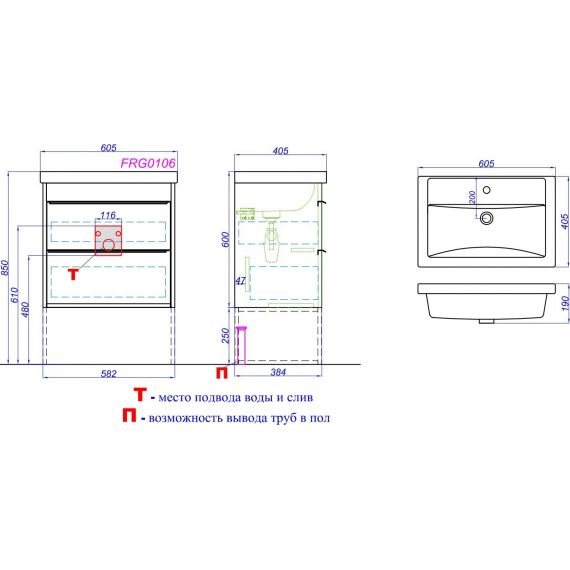 Тумба напольная с раковиной Aqwella Fargo 60 см FRG0106DB/FRGN380, дуб балтийский