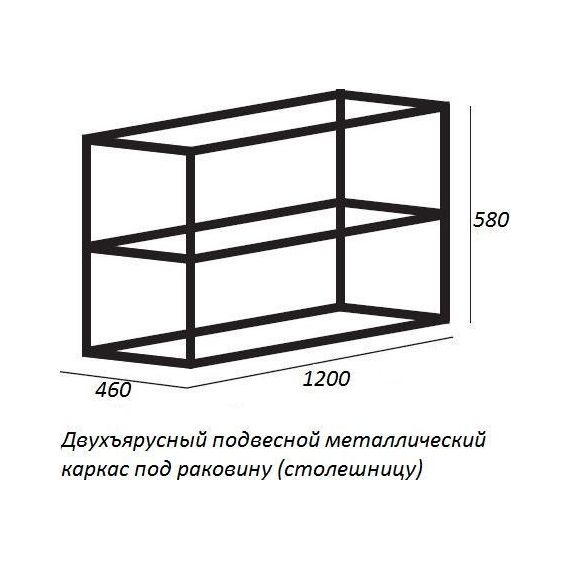Двухъярусный подвесной стальной сварной каркас под раковину, CADRO-120/46/58-2C-SO-MET-ST, цвет - Nero