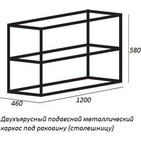 Двухъярусный подвесной стальной сварной каркас под раковину, CADRO-120/46/58-2C-SO-MET-ST, цвет - Nero