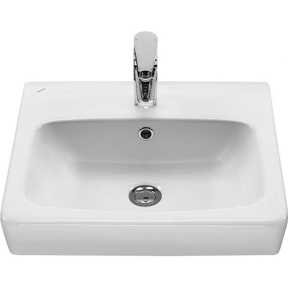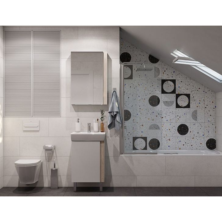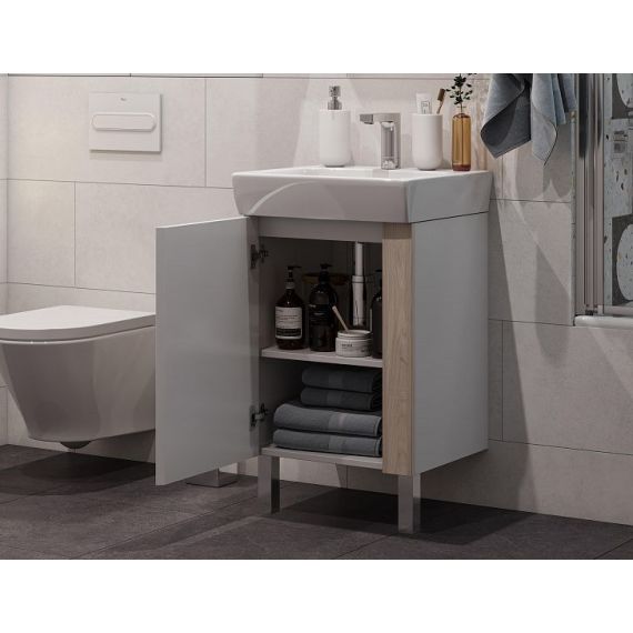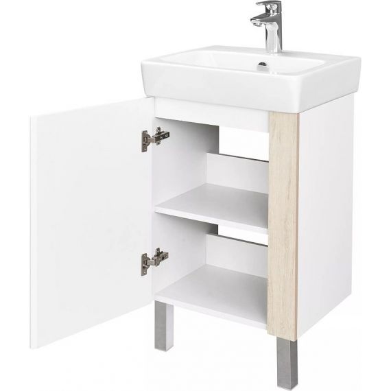 Тумба напольная Акватон Кантри 50 см с раковиной Нео 50, цвет - белый глянцевый/дуб верона.