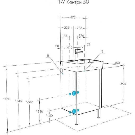 Тумба напольная с раковиной Акватон Кантри 50 см 1A257801AHB20, белый глянцевый/дуб верона