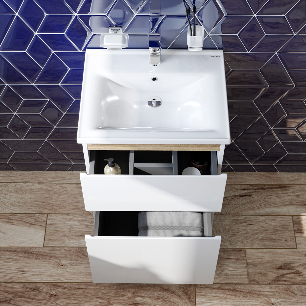 Впервые на рынке – дизайнерская коллекция сантехники которую может позволит себе каждый. Самое эстетичное сочетание цветов и фактур от дизайн-бюро Danelon Meroni (Великобритания & Италия): белые глянцевые фасады дополнены отделкой под светлое дерево. Функциональный органайзер в первом ящике позволит хранить необходимые косметические средства под рукой и в полном порядке. Внутреннее покрытие каждого ящика выполнено в современном цвете Anthracite и имеет противоскользящее покрытие. Встроенная керамическая раковина белоснежного цвета оснащена специальным бортиком для защиты от пролива воды за мебель. Экологически чистые и удивительно долговечные полиакриловые эмали – специальная технология покраски в 7 слоев превосходит технологию нанесения автоэмали у ведущих немецких марок и обеспечивает насыщенный цвет в течение всего срока службы (от 10 лет).
