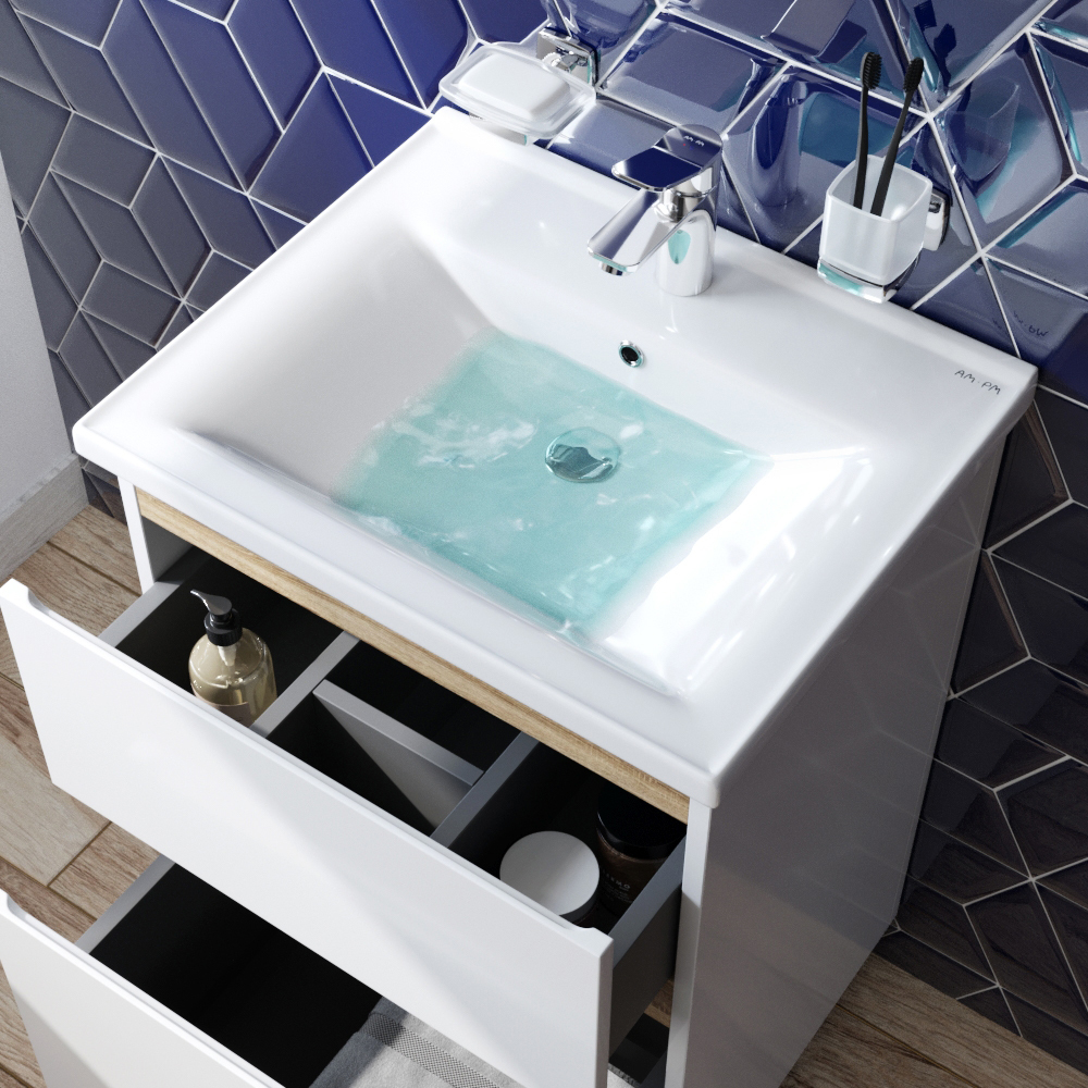 Тумба напольная с раковиной Am.Pm X-Joy 55 см M85AFSX0552WG, белый глянцевый