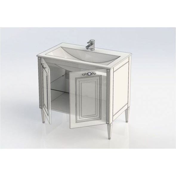Тумба напольная Aquanet Паола 90 см с раковиной Мадонна 90, 2 дверцы, 1 стеклянная полка, цвет белый/золото.