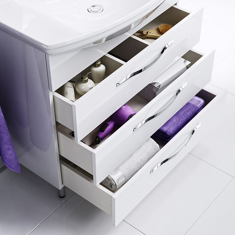 Тумба напольная Aqwella Аллегро 75 см с раковиной Стиль 75, 3 ящика, цвет белый.
