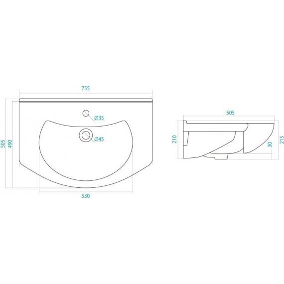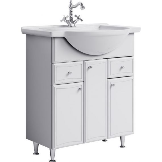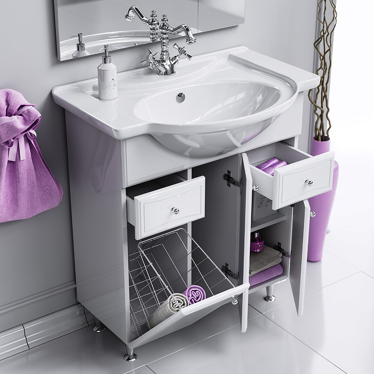 Тумба напольная Aqwella Барселона 75 см с раковиной Модерн 75 см, с двумя ящиками и бельевой корзиной, цвет белый.