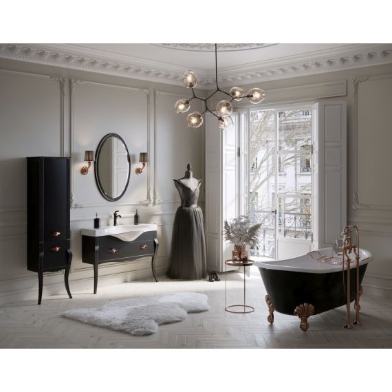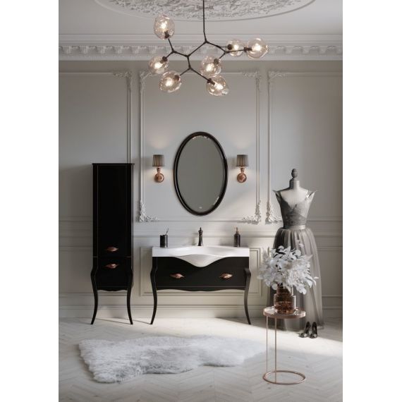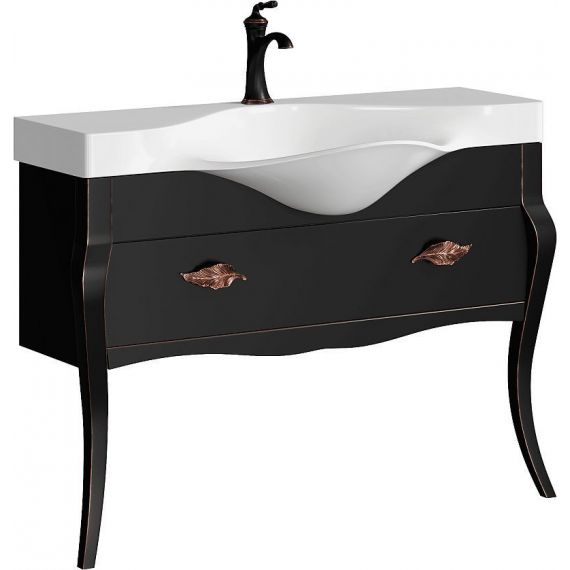 Тумба напольная Clarberg Borgia 110 см с раковиной Brodway 110 см, с 1 ящиком, оснащенными скрытыми направляющими австрийской фирмы Blum с системой мягкого закрывания, цвет черный матовый/патина медь.