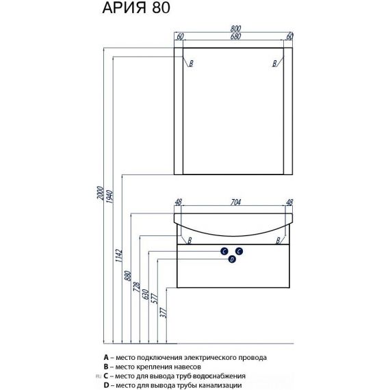 Тумба подвесная с раковиной Акватон Ария 80 см 1A1417K0AA010, белый