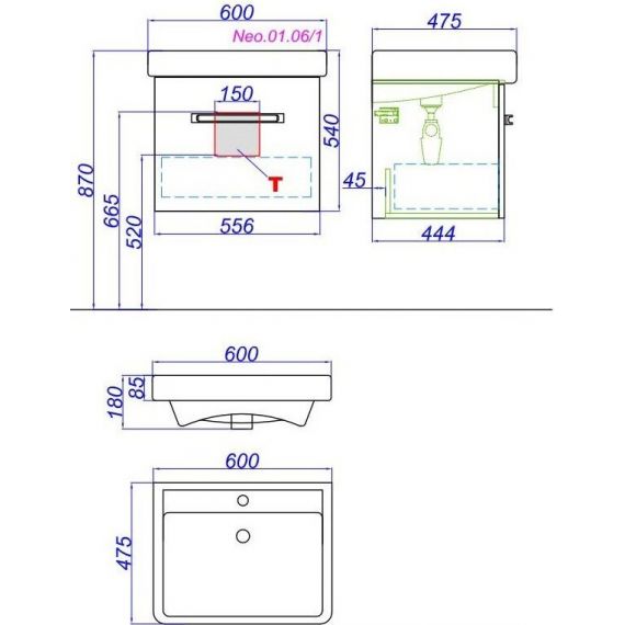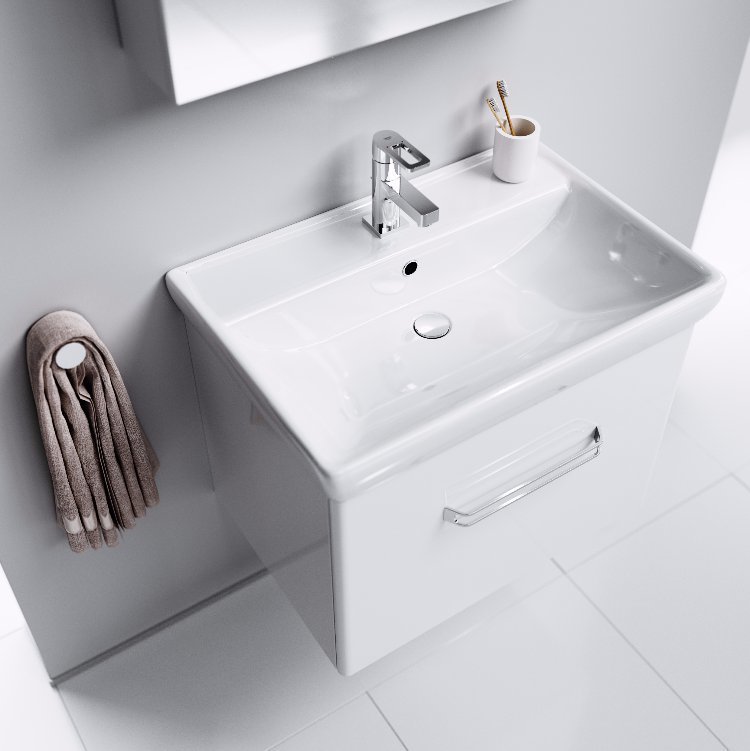 Тумба подвесная Нео Neo.01.06/1 60 см с раковиной Дрея Q60, цвет белый.
