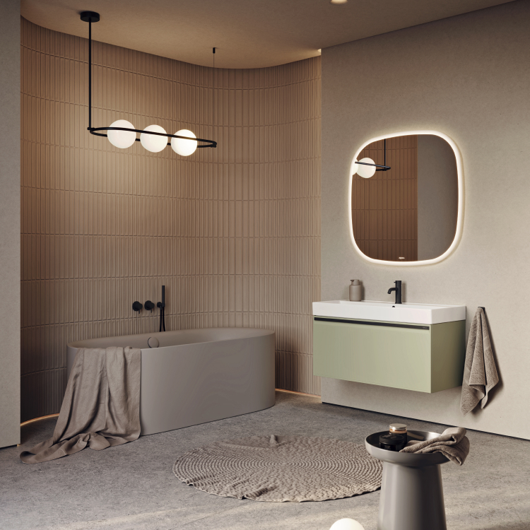 Тумба подвесная с раковиной Aqwella Pure 100 см PUR0110SH, шалфей зелёный