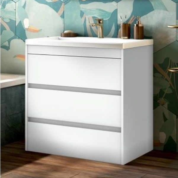 Тумба подвесная Art&Max Family 75 см с раковиной AM-LAV-750-MR-A, 2 выдвижных ящика, направляющие скрытого монтажа Боярд, полного выдвижения с доводчиками, цвет белый глянец.