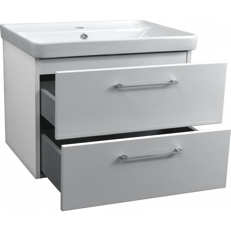 Тумба подвесная Azario Ника 80 см с раковиной Monte 80, 2 выдвижных ящика с доводчиками, цвет белый матовый.