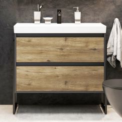 Тумба напольная Stworki Кронборг 90 см TR-477832 с раковиной Адриана 90 см, цвет серый/светлое дерево.