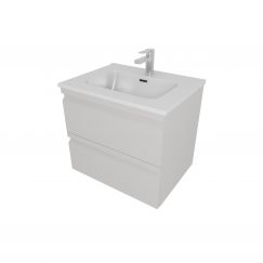 Тумба подвесная Aqwella Alba 60 см с раковиной Compact Slim 600, цвет светлый камень/серый матовый.