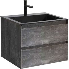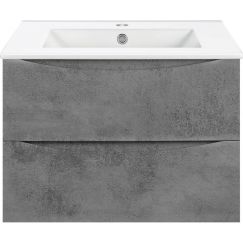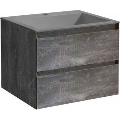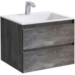 Тумба подвесная Vincea Luka 60 см с раковиной из искусственного камня VCB-13600W, система хранения: 2 выкатных ящика с доводчиками, цвет - серый камень.