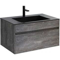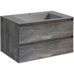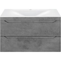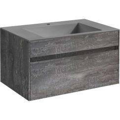 Тумба подвесная Vincea Luka 80 см с раковиной из искусственного камня VCB-13800W, система хранения: 2 выкатных ящика с доводчиками, цвет - серый камень.