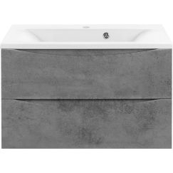 Тумба подвесная Vincea Mia 80 см с раковиной из искусственного камня VCB-3M800W, система хранения: 2 выкатных ящика с доводчиками, цвет - бетон.