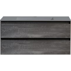 Тумба подвесная Vincea Luka 100 см с раковиной VCB-13100B, система хранения: 2 выкатных ящика soft close, цвет - серый камень.