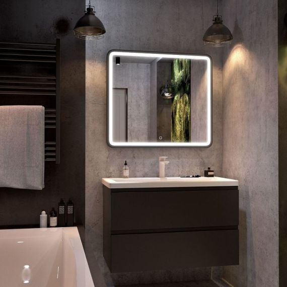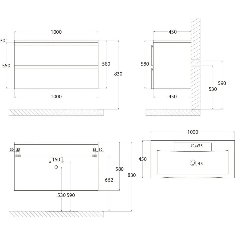 Тумба подвесная Art&Max Bianchi 100 см с раковиной AM-LAV-1000-MR-FP, 2 выдвижных ящика, направляющие скрытого монтажа, с доводчиками, цвет серый матовый.