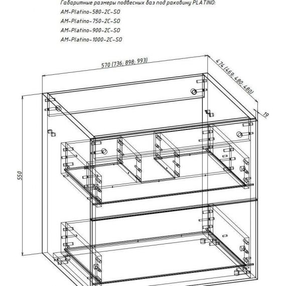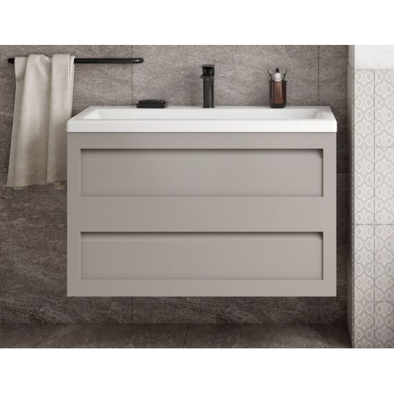 Тумба подвесная Art&Max Platino 100 см с раковиной AM-LAV-1000-MR-A, 2 выдвижных ящика, направляющие скрытого монтажа, с доводчиками, цвет светло-серый матовый.