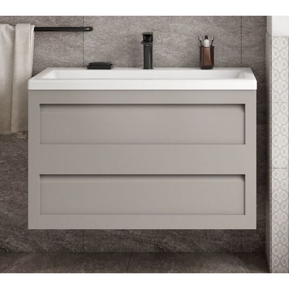 Тумба подвесная Art&Max Platino 90 см с раковиной AM-LAV-900-MR-A, 2 выдвижных ящика, направляющие скрытого монтажа, с доводчиками, цвет светло-серый матовый.