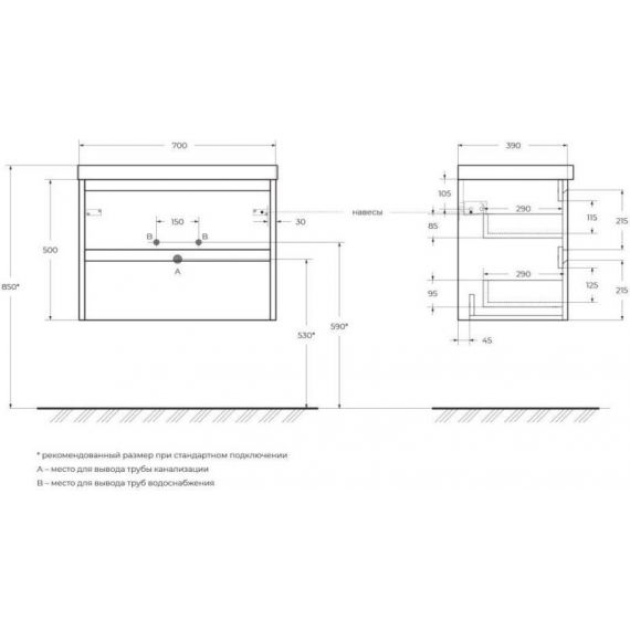 База под керамическую раковину подвесная с двумя выдвижными ящиками
