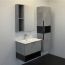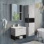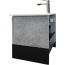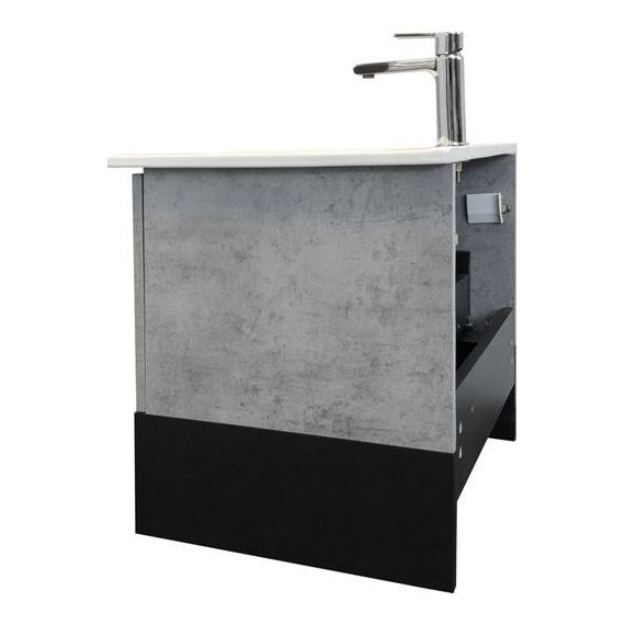 Тумба-умывальник в современном стиле с выкатным ящиком и пространством для открытого хранения. Тумба укомплектована черной матовой алюминиевой ручкой и системой плавного закрывания ящика. Тумба подготовлена для подключения водоснабжения снизу.