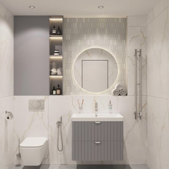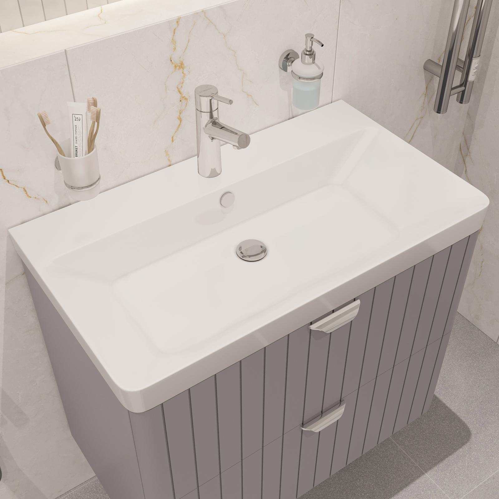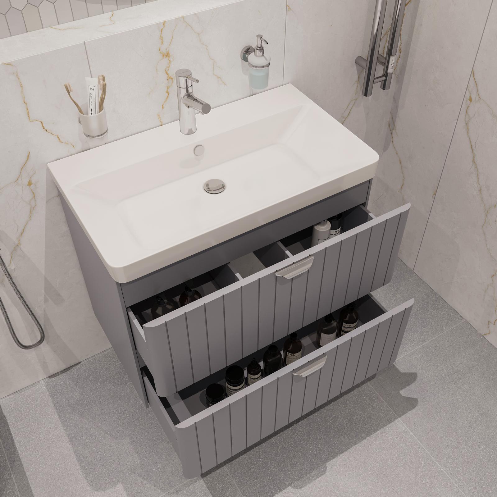 Тумба подвесная с раковиной Stworki Ларвик 80 см 622516, серый