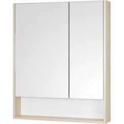 Зеркало-шкаф Акватон Сканди 70 см 1A252202SDB20, 4 петли с плавным доводом, 3 регулируемые стеклянные полки, цвет - белый глянцевый/дуб верона.
