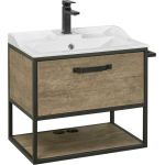 Зеркало Акватон Лофт Фабрик 50 см 1A242502LTDY0, черные металлические профили в форме прямоугольника обрамляют овальное зеркало, под которым находится полочка, цвет - дуб кантри.