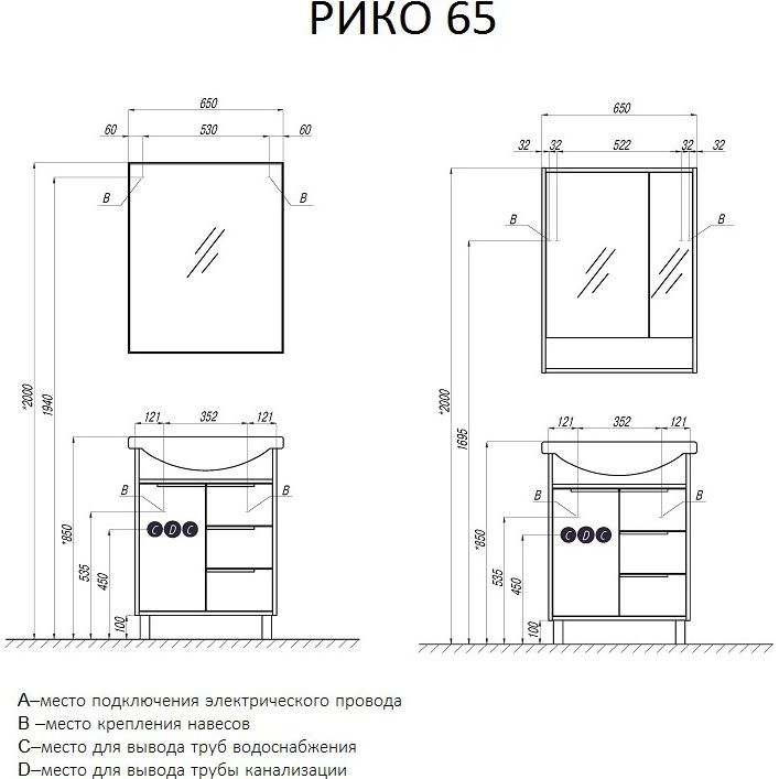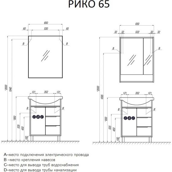 Комплект товаров Зеркало Акватон Рико 65 см 1A2164