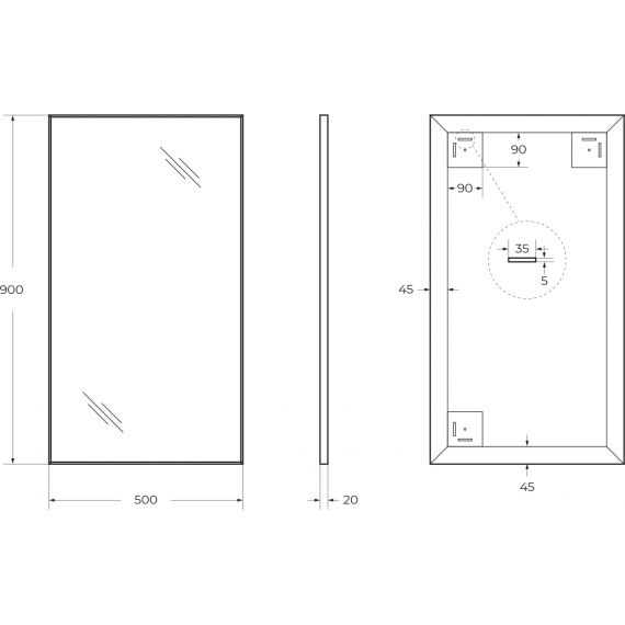 Зеркало BelBagno 50х90 см SPC-AL-500-900 в алюминиевой раме.