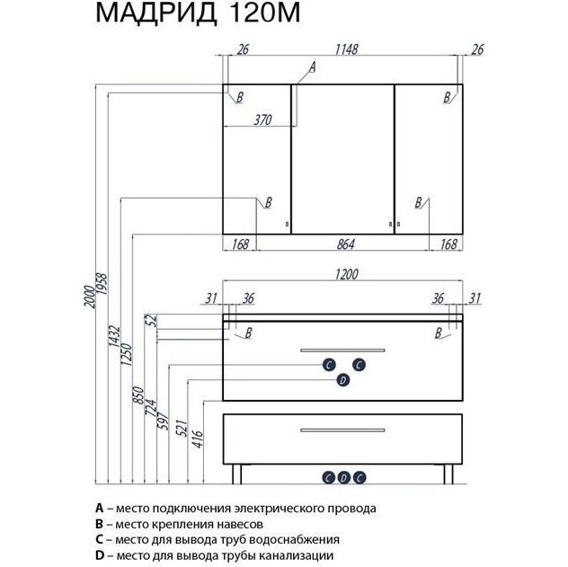 Зеркало-шкаф Акватон Мадрид 120 см 1A113402MA010