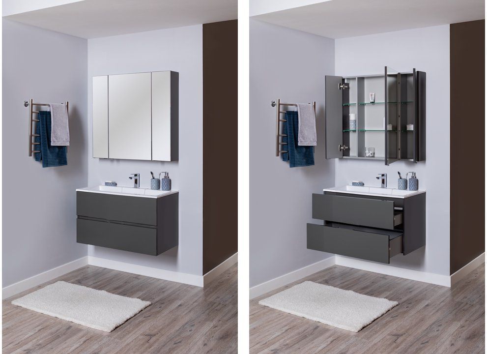 Зеркало-шкаф Aquanet Алвита 90 см. Цвет серый антрацит.