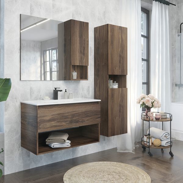 Зеркало-шкаф Comforty Бордо 90 см, дуб тёмно-коричневый
