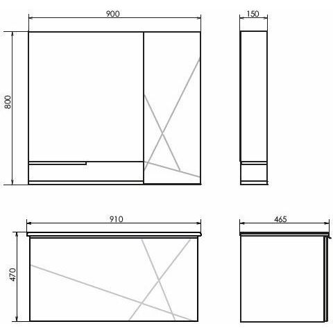 Габариты (ШхВхГ): 900х800х160 мм