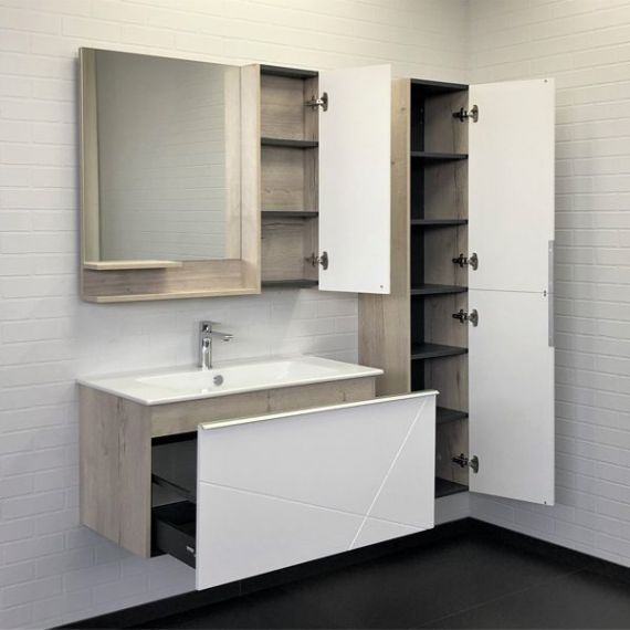 Зеркало-шкаф Comforty Мерано 90 см, белый/дуб дымчатый