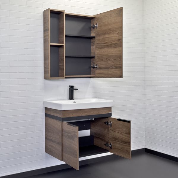 Зеркало-шкаф Comforty Соло 70 см, дуб тёмно-коричневый