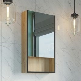 Зеркальное высококачественное полотно с амальгамой на основе серебра. Створка оснащена петлями с системой плавного закрывания. За створкой одна полка.