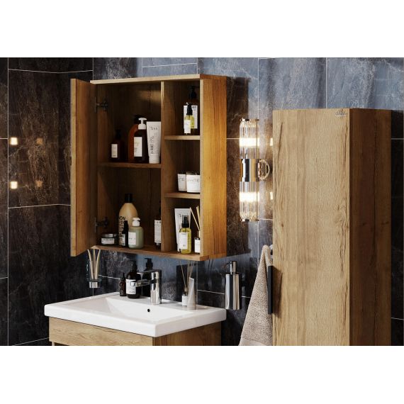 Зеркальный шкаф Onika ЛЕГРАН 70.00У - это сочетание насыщенного древесного декора и благородства металла: роскошная текстура и натуральный цвет дуба дают теплоту, а матовая металлическая ручка добавляет урбанизма и солидности.