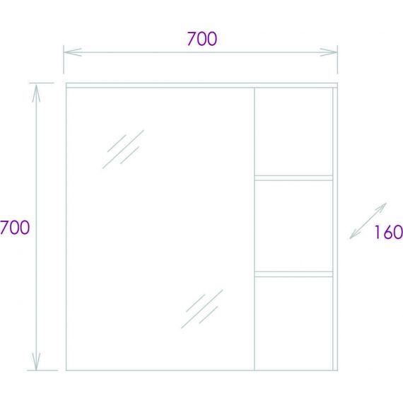 Зеркальный шкаф выполнен из ЛДСП, устойчивой к механическим воздействиям, перепадам температур и высокой влажности.