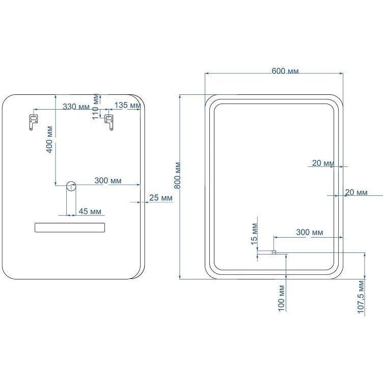 Зеркало Art&Max Genova 60 см AM-Gen-600-800-DS-F-H с Led-подсветкой, диммером, антизапотевателем и сенсорным выключателем.