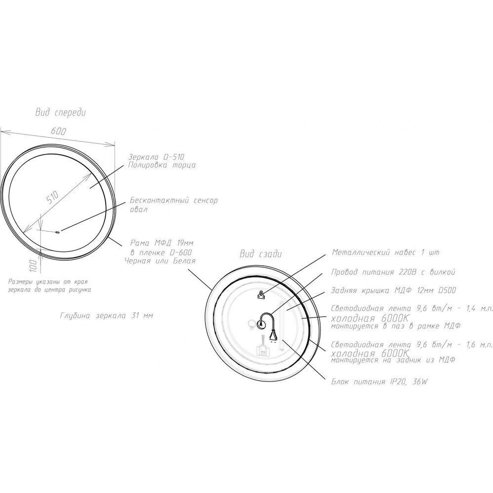 Зеркало Art&Max Napoli Led 60 см AM-Nap-600-DS-F, черный матовый