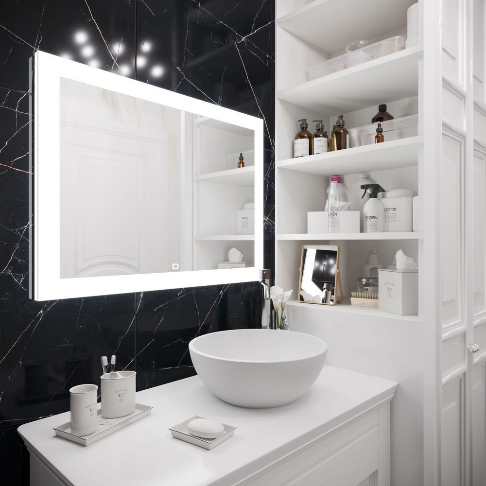 Зеркало Art&Max Soli Led 120 см AM-Sol-1200-800-DS-F-H с подсветкой, антизапотевателем, диммером и сенсорным выключателем.