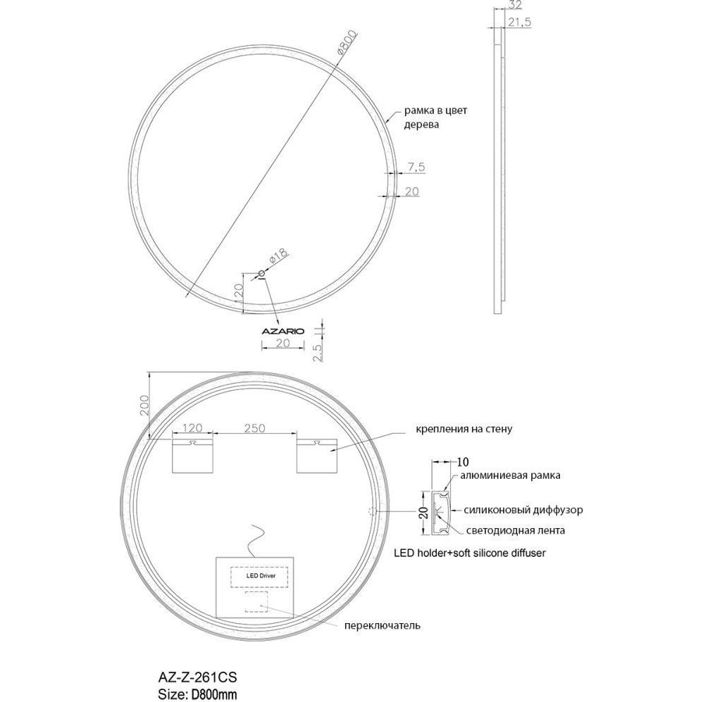 Зеркало Azario Diana 80 см AZ-Z-261CS, дерево