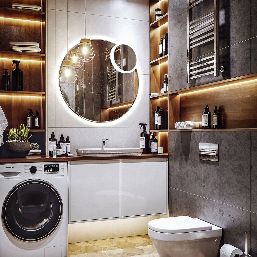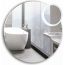 Зеркало-спутник малой формы и матированной кромкой оснащен подсветкой по контуру