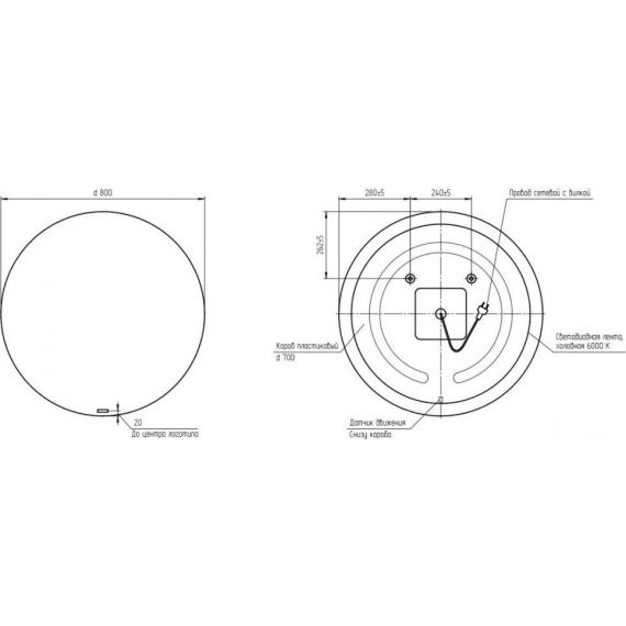 Зеркало Cersanit Eclipse Smart 80 см A64143, с Led-подсветкой и сенсорным выключателем.